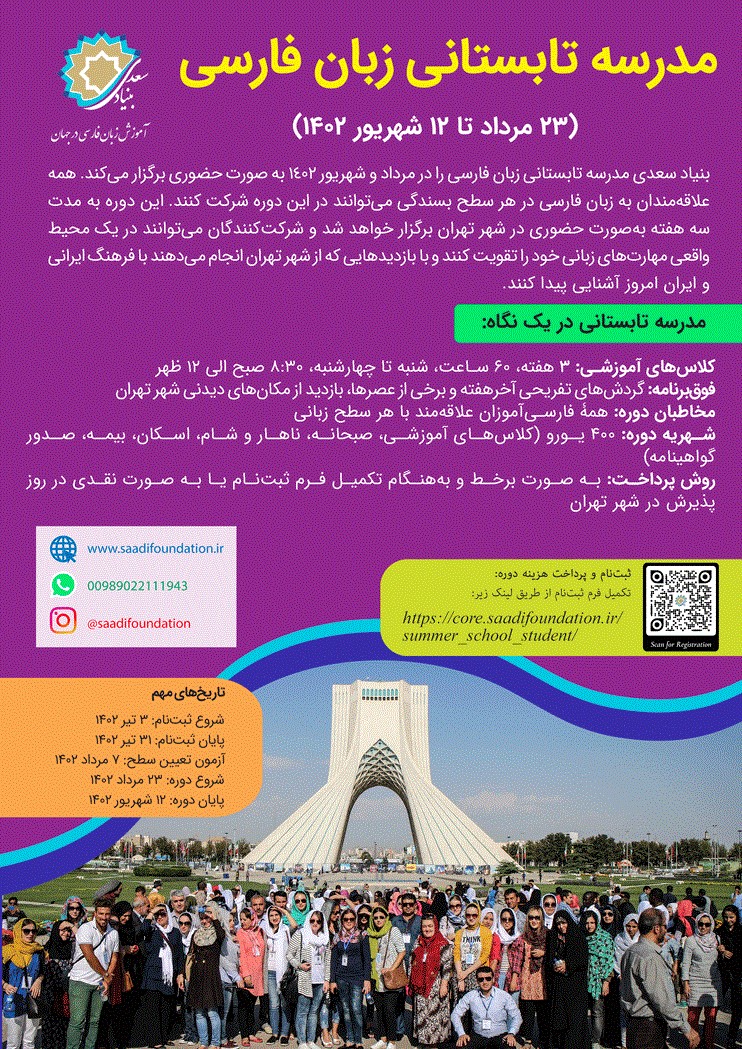 مدرسه تابستانی تربیت مدرس زبان فارسی 23 مرداد تا 12 شهریور 1402