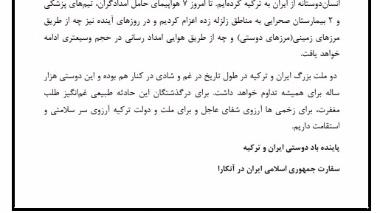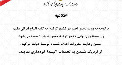 اطلاعیه سفارت جمهوری اسلامی ایران در آنکارا در چهل وچهارمین سالگرد پیروزی انقلاب اسلامی در ایران و روزملی
